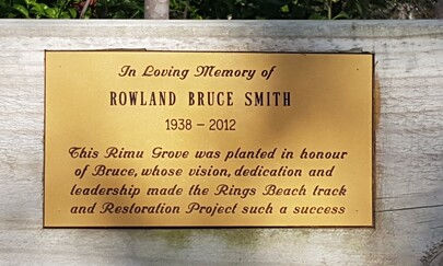 To commemorate Bruce's legacy the group planted a grove of rimu (Bruce's favourite tree) and had a seat installed there in Bruce's memory.