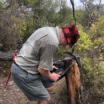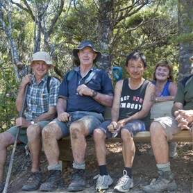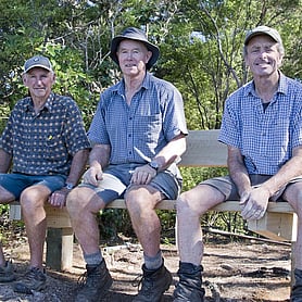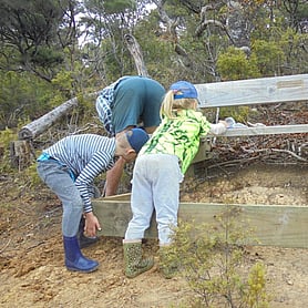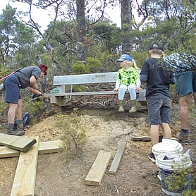 Rings Beach Wetland Group volunteers constructing a memorial seat for Bruce Smith