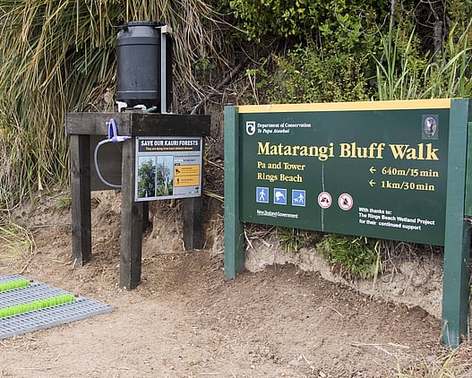 In recent years the threat of spread of kauri dieback has been a major concern. With DOC's assistance, hygiene stations have been installed at the three entrances to the reserve.